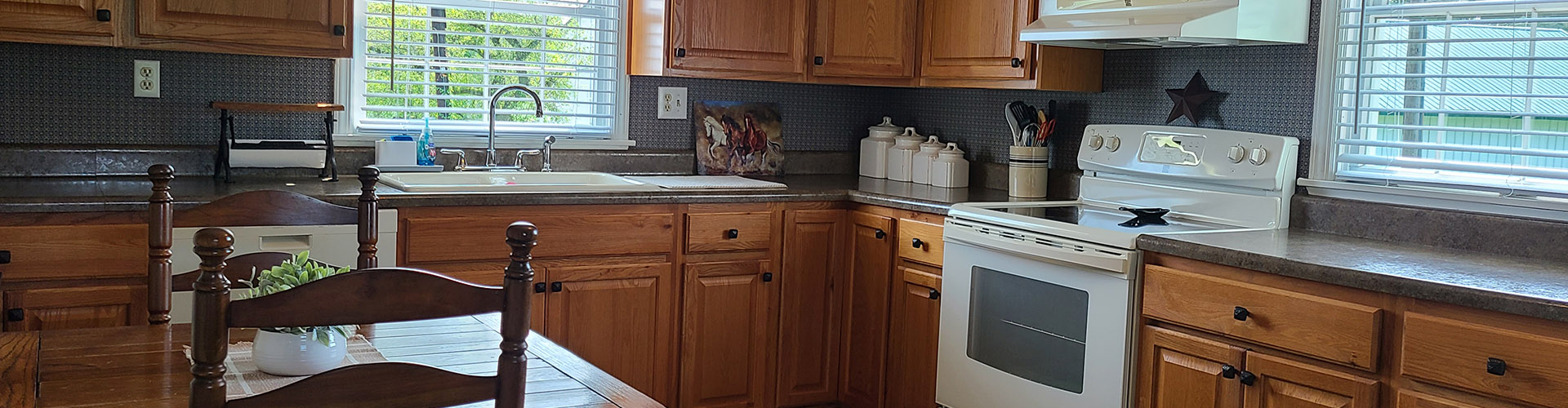 The house combines the old fashion charm of a farmhouse with modern comforts such as WiFi, Smart TV’s, Washer & Dryer, and Air Conditioning. For those that love to cook, prepare your home cooked meal in the fully equipped kitchen then gather around the large dining room table to enjoy your family dinner.